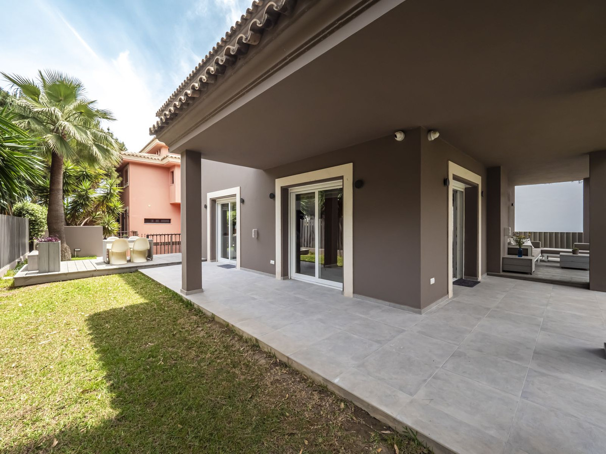 LOCATION, LOCATION, LOCATION. This Dwelling location is an absolute gift, a mere 50m from the sandy Elviria beaches, next to the most glamorous beach bars, eg. "La Plage de Casanis", 5* hotel beach clubs; traditional chiringuitos with the true Andalusian flavours, and all that with abundance of amenities and services such as pharmacy, schools, supermarkets, etc. ... everything one might need to live as a permanent home, or as a holiday property. This independent Villa plot amounts 518sqm, recently renovated to the highest standards both in building materials and construction, with attention to detail (the whole electricity system has been updated and improved, replacement of all the lightning devices, new A/C machinery at the ground floor, changes in the layout of the stairs at the basement to create a new room and a profuse variety of improvements have been made in these renovation works); the house adds up to 334sqm built plus a 43sqm partially covered terrace and a ground floor porch of 48sqm. Finally, a new pool has been built giving the property the icing on the cake. The home is distributed as follows: Entry hall with access to an ample living room with access to the terrace and joined to the dining area and the open plan kitchen with island. Besides, a bedroom with bathroom plus a guest restroom. On the first floor, three complete bedrooms with en suite bathrooms, all of them facing outside. On the basement, room for 4-5 cars, office space/bedroom, laundry room, bathroom and storage room. The property includes an own well. Due to location and features, this is a wise investment for a permanent home or as a holiday home with a huge potential for holiday rental.