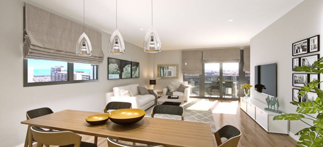The residential complex is located next to the Canal del Puerto in Badalona and boasts spectacular private terraces with views over the Mediterranean shoreline.