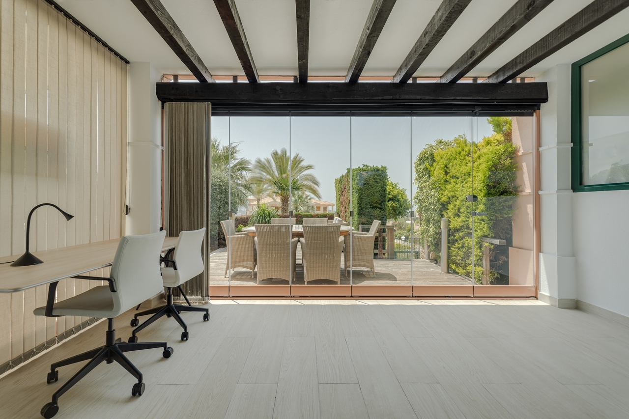 The house is sold with an individual parking space, in the uncovered parking lot of the urbanization. It is a safe and quiet neighborhood, with good neighbors, many green areas and two large community pools, as well as two other shallow children's pools. Located in a video-surveillance area, surrounded by luxury villas and just 5 minutes from the beach, close to shopping centers, supermarkets, schools, etc.