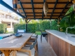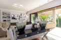 A bright and exquisitly decorated living and dining room, with a direct access to a beautiful terrace. Step outside to discover a sparkling pool surrounded by lush landscaping. Perfect for enjoying sunny days and warm evenings, the pool area is an idyllic retreat for outdoor gatherings or simply lounging in the sun or stay under the shade under its garden patio.