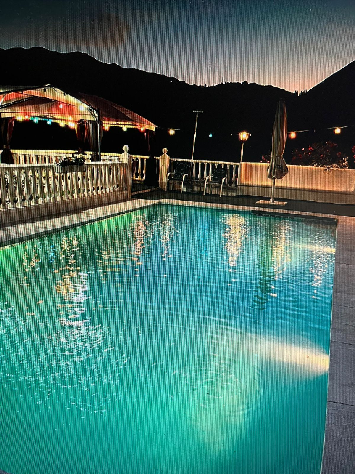 In addition to the main house there are numerous entertaining areas, dining and sunbathing terraces, a large, heated swimming pool, an outdoor bathroom, a chef’s kitchen, and bar plus significant hard standing areas supported by concrete foundations.