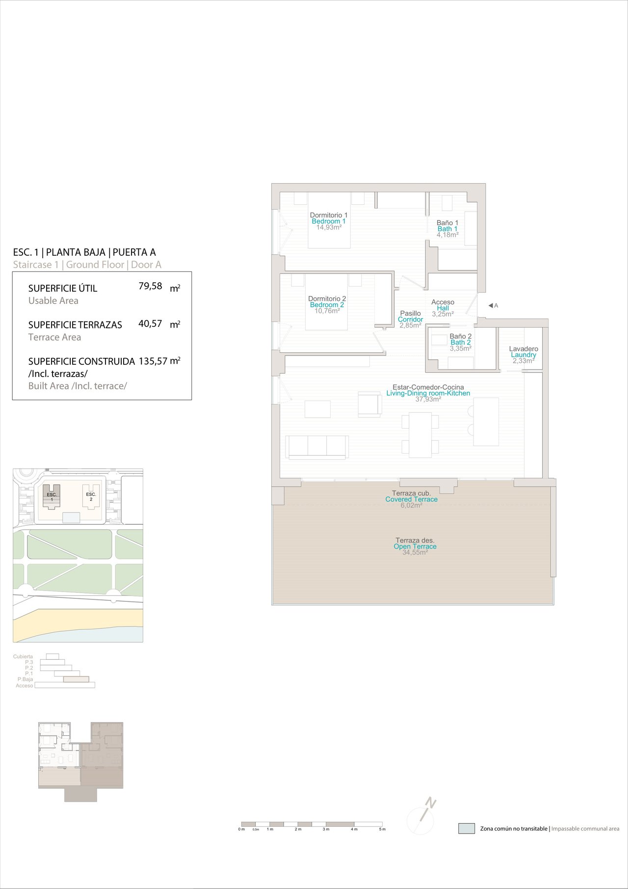 Complete installation of ducted air-conditioning, by means of aerothermics. Underfloor heating, using aerothermics. Temperature control by room in bedroom and living room with AirZone system.