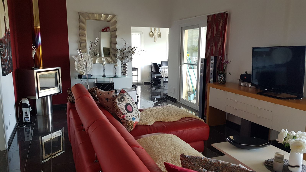 This beautiful country house - built in 2012 - has a large garage with workshop (approx. 45 m²), a guest flat (approx. 45 m²) with living room and open-plan kitchen, a shower room and a separate large terrace. The living space is approx. 90 m². There are 2 bedrooms and 2 bathrooms (one en-suite) and an open-plan kitchen - very smart and only 3 years old. A large terrace of approx. 30 m² with marvellous views of the mountains as far as Málaga and the Sierra Nevada is accessible from the living room, another terrace is located behind the building. There is a private well and a large underground tank with a capacity of 11,000 litres for drinking water in case the groundwater is insufficient. A small pool - not heated, no air conditioning and no heating - just a fireplace in the living room. The plot measures approx. 3,500 square metres and is planted with olive trees, lemon trees, vines, almond trees, etc.
