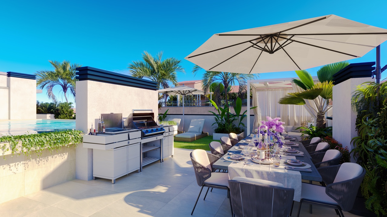 The project offers its residents an oasis of wellbeing and relaxation on the solarium terrace with a large 24m2 swimming pool, waterfall, barbecue area and chill out area.