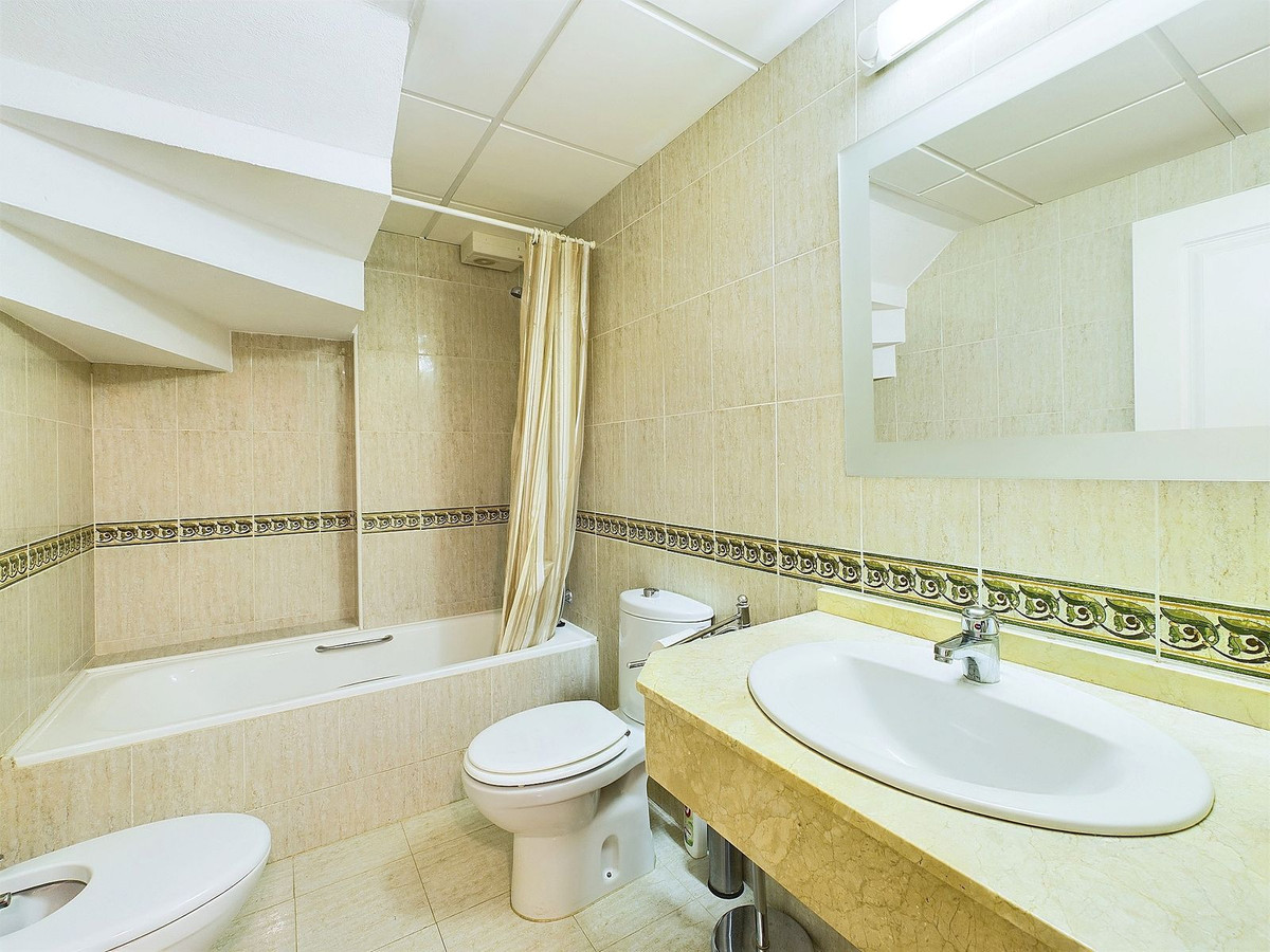 Downstairs, we find a full bathroom servicing the 2 bedrooms. The main bedroom has exit to the internal patio, currently hosting the washing machine and being used as a laundry room. This space would easily transform into a little chilling den with the additon of a bit of greenery, vertical gardens and a hammock, for example, as it is flooded with natural light and brings in natural ventilation while being rain-proof. The second bedroom also enjoys its own little outdoor space with access to a south-facing, cosy terrace overlooking the pool. In total there are 10 meters of outdoor space distributed in the 2 small terraces plus the 9.25 square meters of patio. Both bedrooms have built-in wardrobes and by having the bedrooms downstairs, you are guranteed a cool night of sleep even in the summer months.