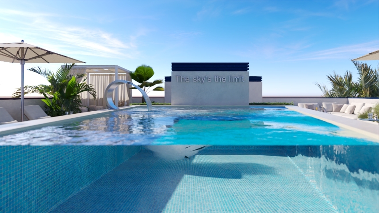 The project offers its residents an oasis of wellbeing and relaxation on the solarium terrace with a large 24m2 swimming pool, waterfall, barbecue area and chill out area.