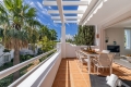 The exterior of the property is equally impressive, with an extensive partially covered terrace complete with outdoor dining area and sun loungers, making this space the ideal place to relax or entertain guests. In addition, the property includes a private parking space.