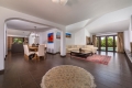 As you enter the villa, you're greeted by a welcoming entrance hall that seamlessly flows into a spacious living room. Adjacent is a fully equipped Bulthaup kitchen with state-of-the-art Gaggenau appliances, perfect for culinary enthusiasts. Both the living room and kitchen have direct access to a charming terrace and a beautifully landscaped garden with a pool, creating an idyllic space for relaxation and entertaining.