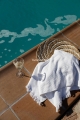 The pool area is designed for relaxation and entertainment, featuring a heated pool with a generous size of 43 square meters. Adjacent to the pool is a semi-covered dining area with lighting, an outdoor lounge, an independent kitchen, and a convenient bathroom.