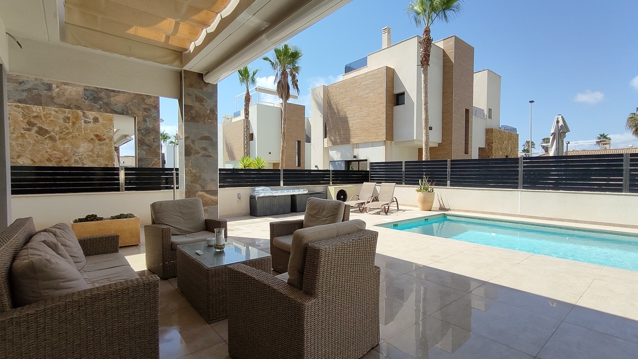 Discover this magnificent luxury villa, built in 2018, in one of the most sought-after areas of the southern Costa Blanca. Ideally positioned just a 5-minute walk from La Mata Beach, this stunning home offers a prime coastal location, breathtaking sea views, and sun all day thanks to its perfect south-facing orientation.