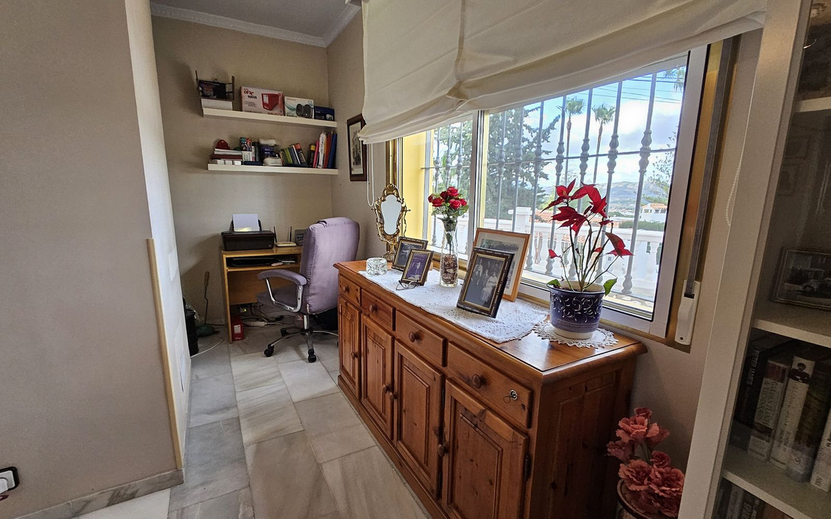 The house is set in an elevated position and from the front porch and poolside area there are spectacular views of the mountains and towards the City of Malaga.