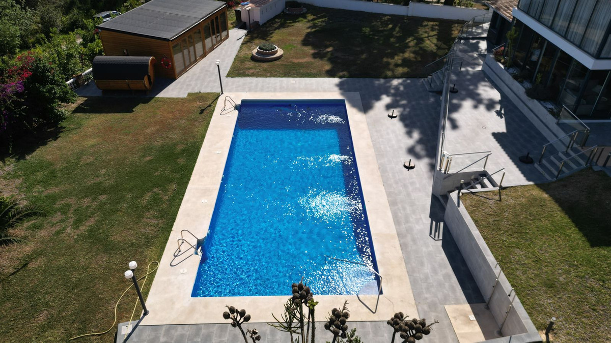 The villa provides secure parking for two cars and additional open parking for six more vehicles, along with a ramp for those with reduced mobility. Security features include an alarm system, security cameras, a monitoring area, and room access via a magnetic card system. Solar panels power the entire villa, ensuring excellent energy efficiency. The property is move-in ready with no renovations needed and holds an active tourist license.