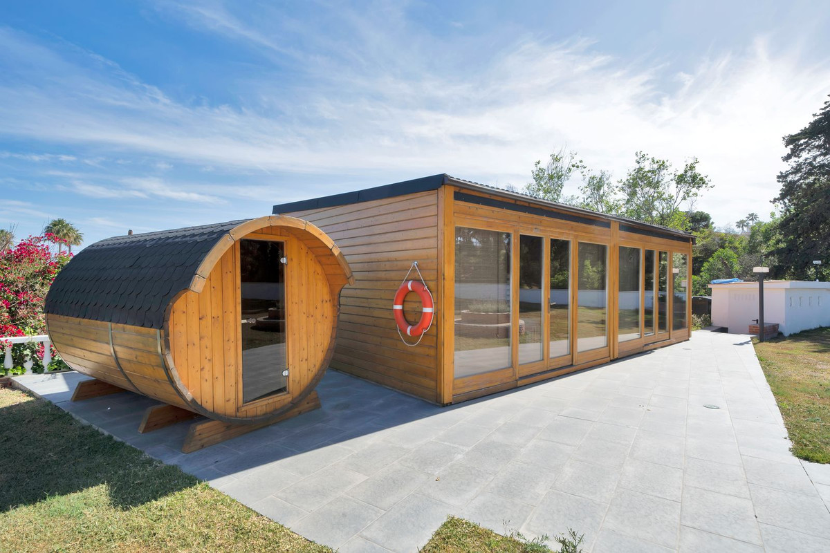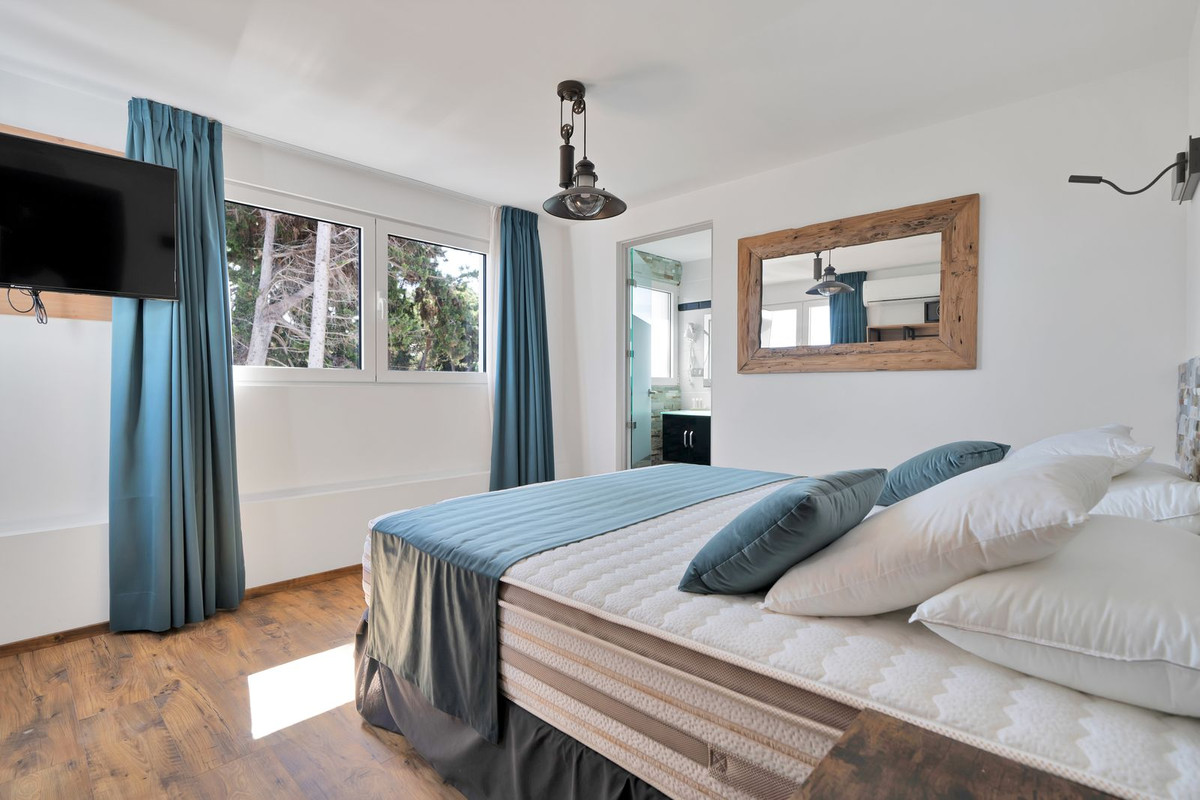 From the reception, you can access the sauna, jacuzzi, swimming pool, rooms, and kitchen-dining area. The first floor boasts six double en-suite bedrooms, a guest toilet, a large dining room, and a fully equipped kitchen, both with serene views of the pool and terrace access. The second floor offers nine double en-suite bedrooms and one quadruple en-suite bedroom, all with spectacular sea and open views.