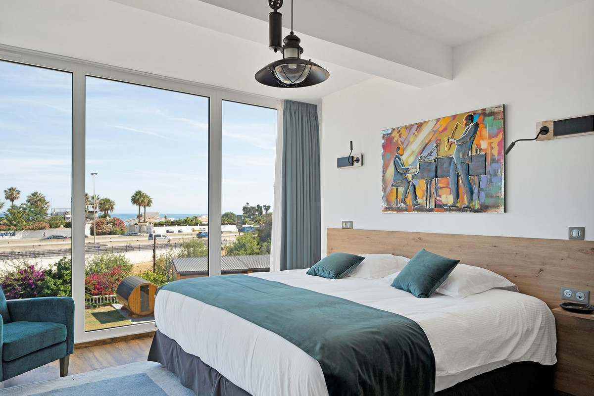 We are thrilled to present a remarkable investment opportunity: a magnificent villa converted into a boutique hotel with tourist licence, just 50 meters from the beach. This property features 16 soundproofed, en-suite rooms, all fully equipped and recently renovated. As you enter through the pedestrian gate, you're welcomed by a spacious terrace, a barbecue area, and a stunning bar complete with fridges and beer taps—perfect for enjoying cocktails and relaxation. Next to the bar, you'll find a large reception area with dual entrances from the parking lot and pedestrian gate.