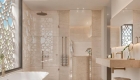 - Ground floor: a stunning central space with an open-plan living-dining area and American kitchen, designed to seamlessly merge indoor and outdoor living with natural light and generous proportions. This level also includes a separate chef's kitchen, ideal for more practical and discreet use. On the same floor there are four bedrooms with en-suite bathrooms, a guest toilet, and direct access to the garden, where the villa reveals one of its most impressive features: two private swimming pools, with a spectacular waterfall, turning the outdoor area into a true oasis of relaxation and exclusivity. A covered porch completes the layout, perfect for enjoying the Mediterranean climate all year round.