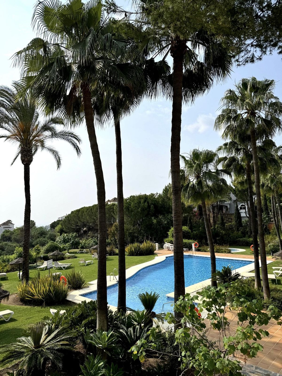 This beautifully maintained 2-bedroom ground floor apartment is located in a secure, gated urbanization in the prestigious La Quinta area. It offers breathtaking mountain and partial sea views, along with a large, private covered terrace that provides a serene setting for relaxing or entertaining.