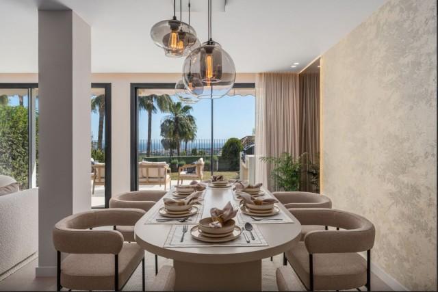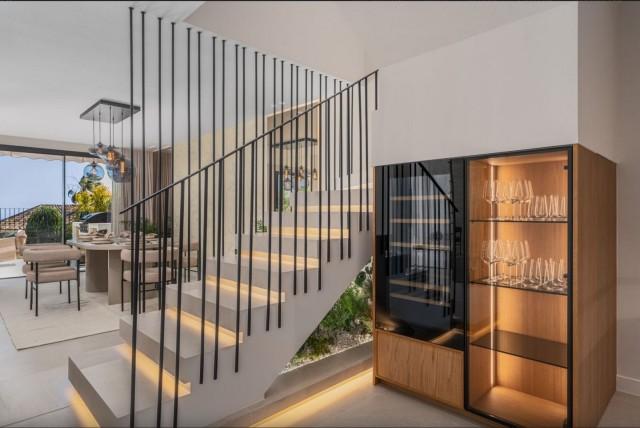A meticulously renovated three-level townhouse for sale is located in the secure, well-maintained community of La Quinta Hills in Benahavís. Fully renovated in 2024, this property showcases a seamless blend of Mediterranean tranquility and Scandinavian minimalism, resulting in a warm, functional home with stunning design throughout.