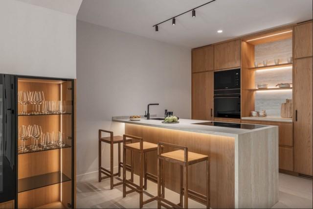 Crowning the property is the rooftop solarium, a highlight. From this elevated space, residents can enjoy panoramic views of the Mediterranean and the iconic La Concha mountain. Outfitted with a built-in lounge, bioethanol fireplace, bar area, outdoor shower, and sunbeds, this space invites year-round use and relaxation.