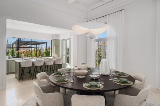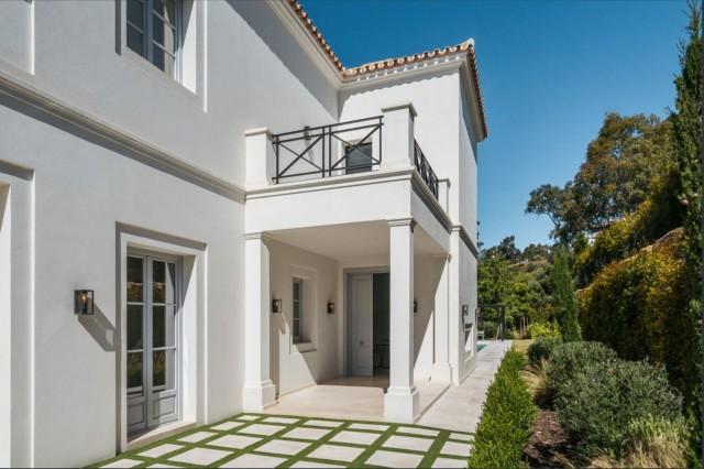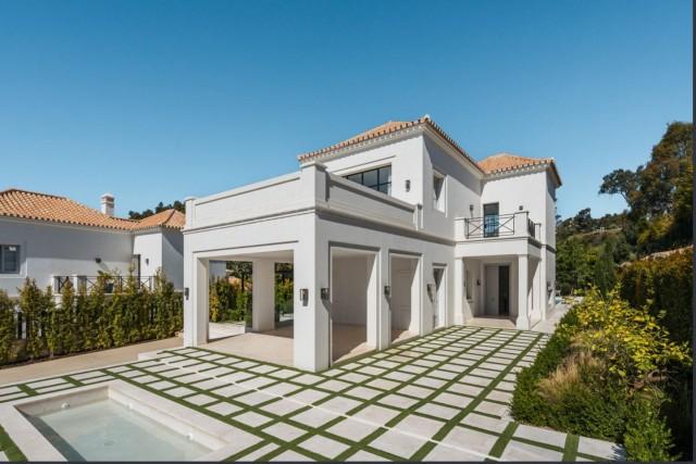 An exceptional villa for sale within La Cerquilla, an esteemed neighborhood in Nueva Andalucía’s renowned Golf Valley. Completed in 2023, this newly constructed villa represents a harmonious blend of modern design and classical influences inspired by French provincial architecture. Its expansive 475 square meters of built area, along with a refined 78 square meter terrace, offer ample space for relaxation and alfresco dining.