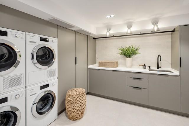The bespoke kitchen is a chef’s delight—fitted with top-of-the-line appliances, extensive cabinetry, and generous countertop space, marrying functionality with style. Adjacent lies a refined dining area that opens seamlessly onto the lounge and outdoor terraces, ensuring a continuous flow between indoor and outdoor living.