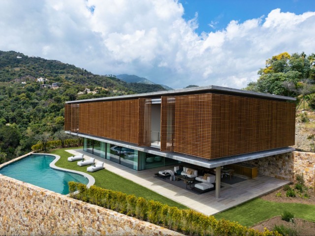 This villa sets a new benchmark for refined living within the prestigious El Madroñal area in Benahavís. Designed by renowned architect Marcio Kogan in collaboration with Lamar Development. Positioned in one of the most sought-after gated communities, the south-west facing villa offers sweeping panoramic views of the Mediterranean Sea and the surrounding mountain ranges. The design merges seamlessly with its beautifully landscaped garden, where a pristine swimming pool takes center stage amidst the natural surroundings.