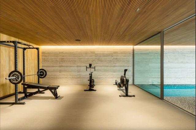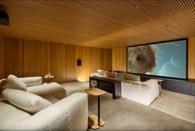 Inside, every detail articulates modern sophistication, with amenities that include a heated swimming pool and Turkish bath, as well as a private cinema room and wine cellar. These indulgent features create an environment where luxury meets comfort. Furnishings throughout the villa are selected to echo the modern architectural lines, ensuring an ambiance that is both elegant and welcoming.