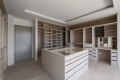 The upper level is dedicated to an expansive master suite that redefines private luxury. The suite offers direct access to a generous terrace with panoramic sea views, ideal for morning reflections or evening relaxation. A walk-in wardrobe provides ample space for curated collections, while the marble bathroom invites indulgence with its free-standing soaking tub and carefully selected finishes. An additional en-suite bedroom on this floor mirrors the same high standard of design, offering serene garden views and fostering a restful environment.