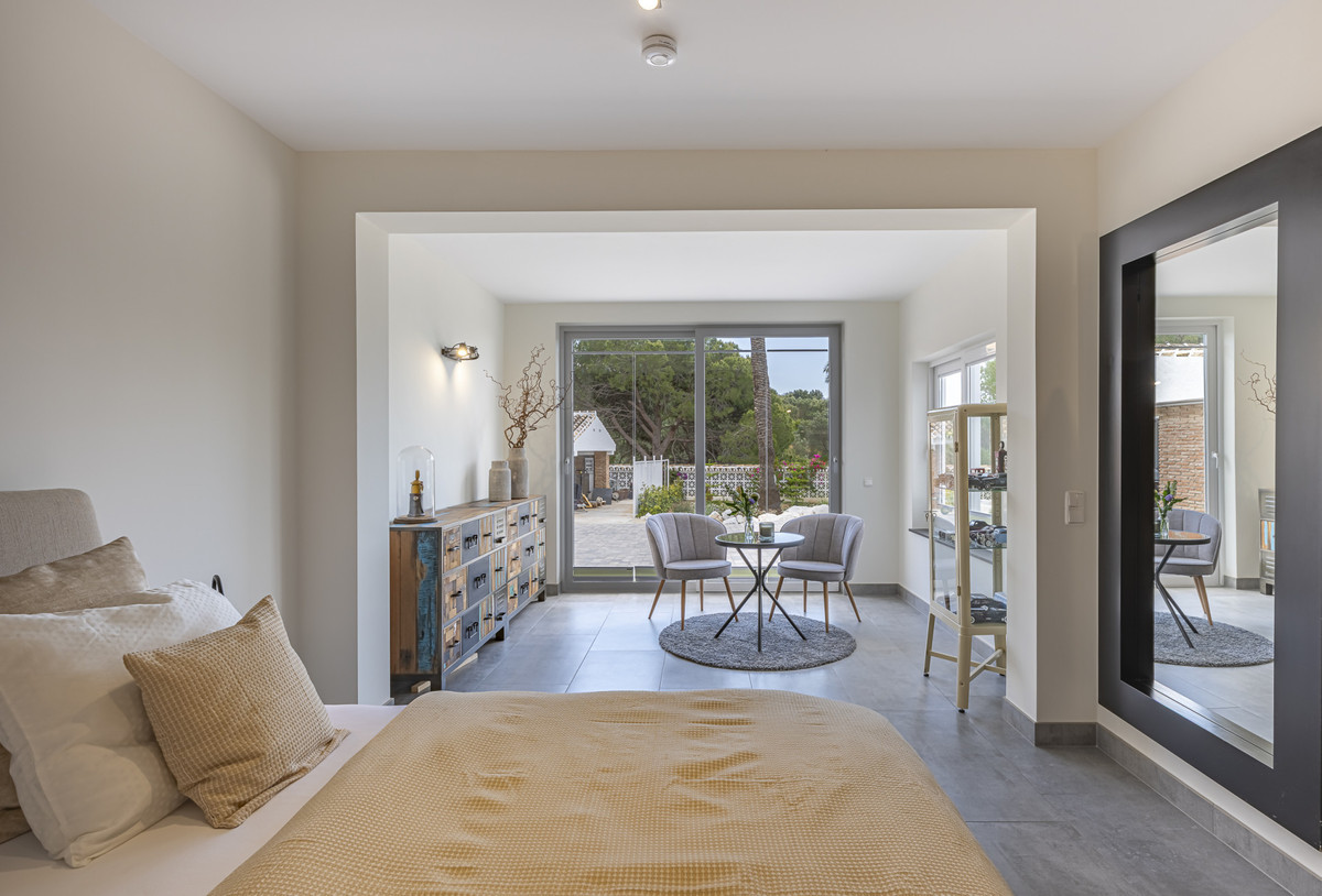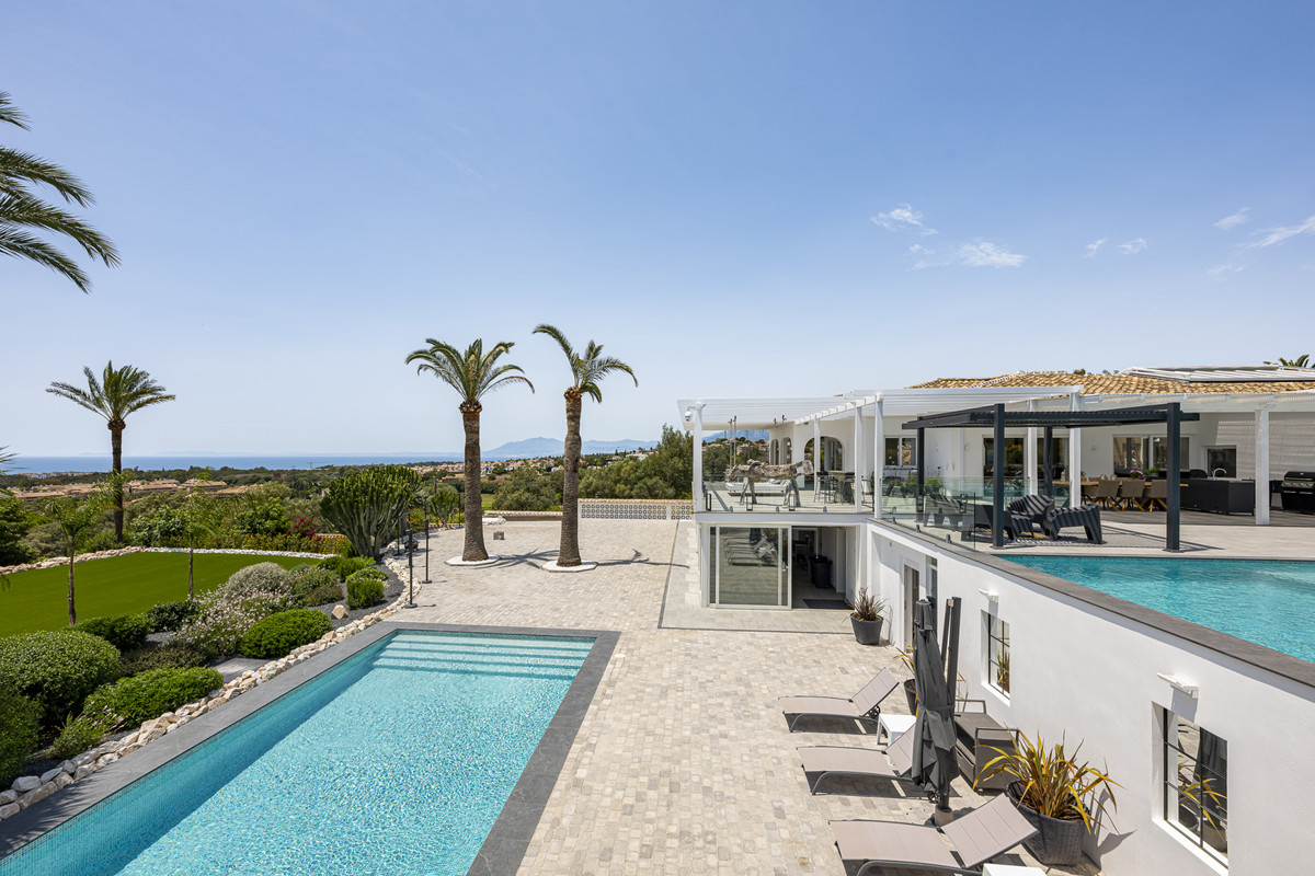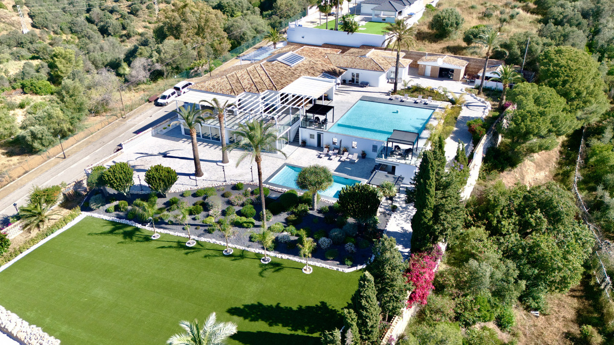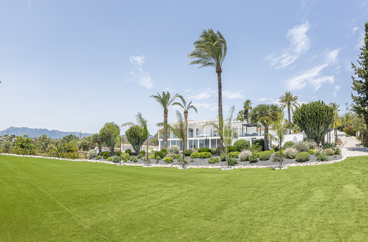 Set on two generous plots totalling 6.128 m², this private and peaceful luxury villa offers a rare blend of modern Mediterranean style and natural beauty in Elviria, Marbella East. Surrounded by its own unspoilt land on one side, the property enjoys exceptional privacy, space and uninterrupted views. The home is situated on one level, a unique find in this sought-after area, offering comfort and easy living. Just minutes from a local commercial centre and the A-7 coast road, the location is ideal for reaching Marbella, La Cañada shopping centre, international schools and the coast. Golf courses, hiking trails, and water sports are also nearby, adding to the appeal of the lifestyle.