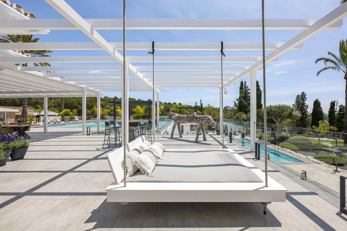 What makes this property stand out are the exceptional outdoor areas. The beautifully maintained garden surrounds the home, filled with quiet corners perfect for reading or relaxing. The terraces are extensive and varied, offering postcard-perfect views across the hills and out to the sea - the kind of views that never get old. Two stunning swimming pools enhance the appeal: one located at the main living level for easy access and another on a lower terrace, offering breathtaking views. Chill-out zones are dotted throughout the grounds, including a BBQ area, two outdoor dining spaces, a bar and both shaded and sunny spots to enjoy throughout the day.