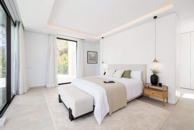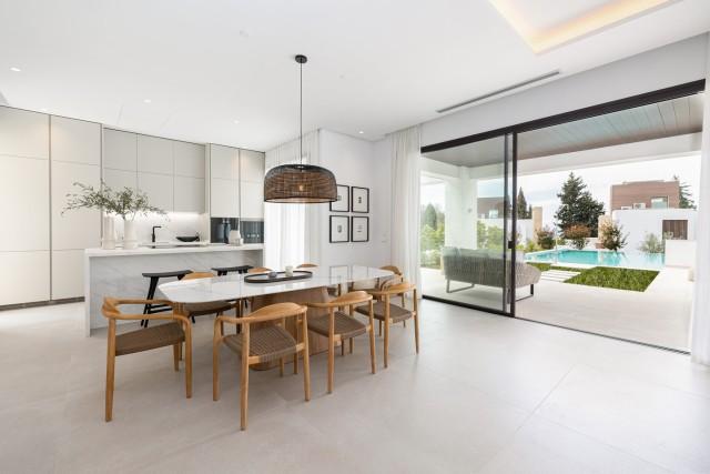 Welcome to this villa within a newly completed (2023) development nestled in the prestigious area of Marbella's Golden Mile. This exclusive gated community, designed by the renowned architect Ernesto Palanco, offers a serene oasis of greenery and peace, yet is conveniently close to the promenade and beach. It is a private community consisting of only 15 distinct villas. With 24-hour security guards and concierge services, residents can enjoy the utmost privacy and security.