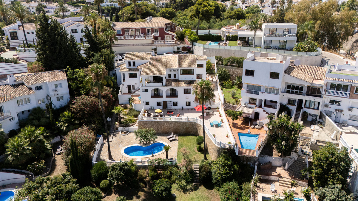 Situated in the heart of Torremuelle, one of Benalmádena’s most exclusive and tranquil residential enclaves, this exceptional Andalusian-style villa blends traditional charm with refined modern comfort. Offering 6 spacious bedrooms, 5 bathrooms, and an independent guest apartment, the home is surrounded by mature gardens, expansive terraces, and panoramic views over the Mediterranean coastline and surrounding hills.