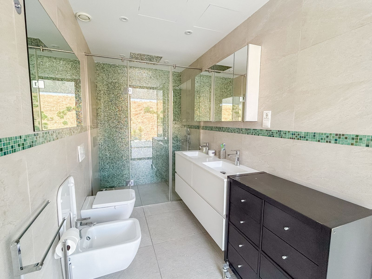 Built on a generous plot of 1,718 m², the property offers a total area of 312 m², distributed over three levels that combine functionality, design and warmth. With a privileged south and west orientation, the villa opens up to unrivalled panoramic views that encompass the Mijas valley, the majestic mountains and the blue Mediterranean Sea.