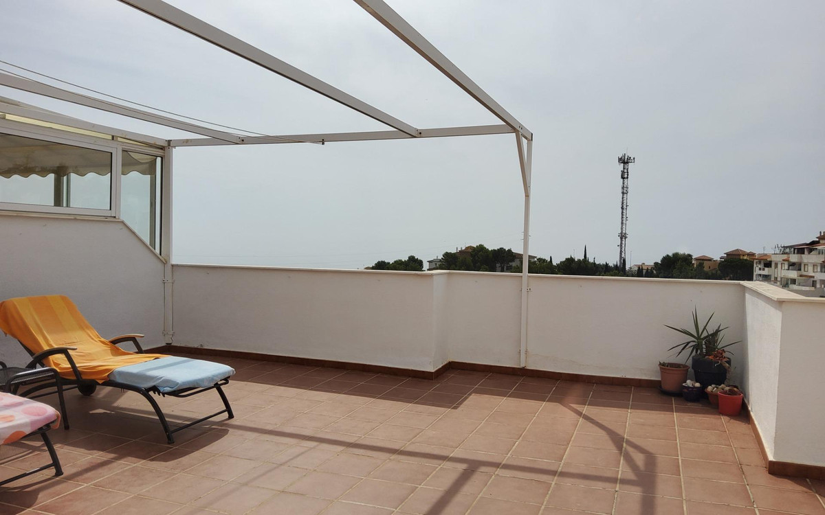 This spectacular single-story penthouse offers a spectacular lifestyle, thanks to its spacious terraces that provide breathtaking views of both the sea and the mountains. Located in a gated and quiet urbanization, this home is close to supermarkets, restaurants and outstanding local attractions such as the famous Buddhist stupa and the Mariposario of Benalmadena Pueblo. Its excellent location allows easy access to the freeway, being only 10 minutes from Malaga International Airport. The property has exceptional communal facilities including a beautiful swimming pool to enjoy the sunny days as well as a paddle tennis court ideal for keeping active. There are also nearby areas dedicated to sports where you can practice basketball or field field hockey. Undoubtedly, this is a unique opportunity for those looking for comfort along with full services in a privileged natural environment.