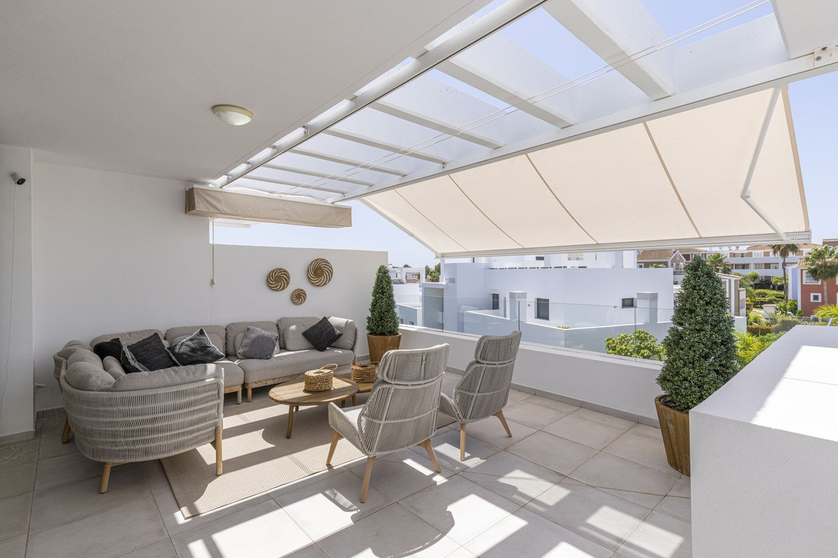 This spectacular 2-bedroom, 2-bathroom penthouse is located in the exclusive development Cortijo del Golf, in the El Paraíso area of Estepona. Situated in the heart of the New Golden Mile, this enclave combines tranquility, security, and proximity to key points of interest on the Costa del Sol, such as Puerto Banús and Marbella, just a few minutes away by car.