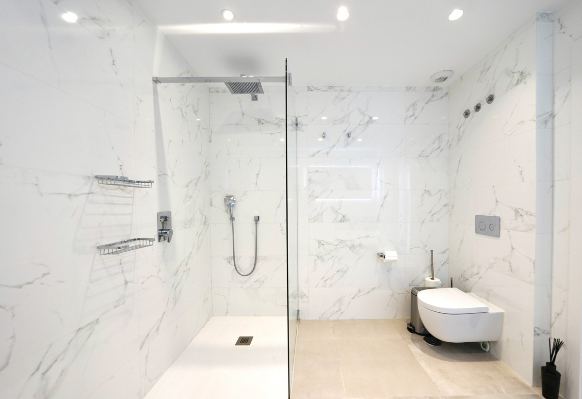 On the garden level, four spacious bedrooms open directly to the pool and landscaped grounds, creating a private retreat for family and guests. Elegant bathrooms with walk-in showers and refined finishes enhance the sense of comfort and style, while the connection to the poolside terrace makes this floor ideal for relaxed, resort-like living.