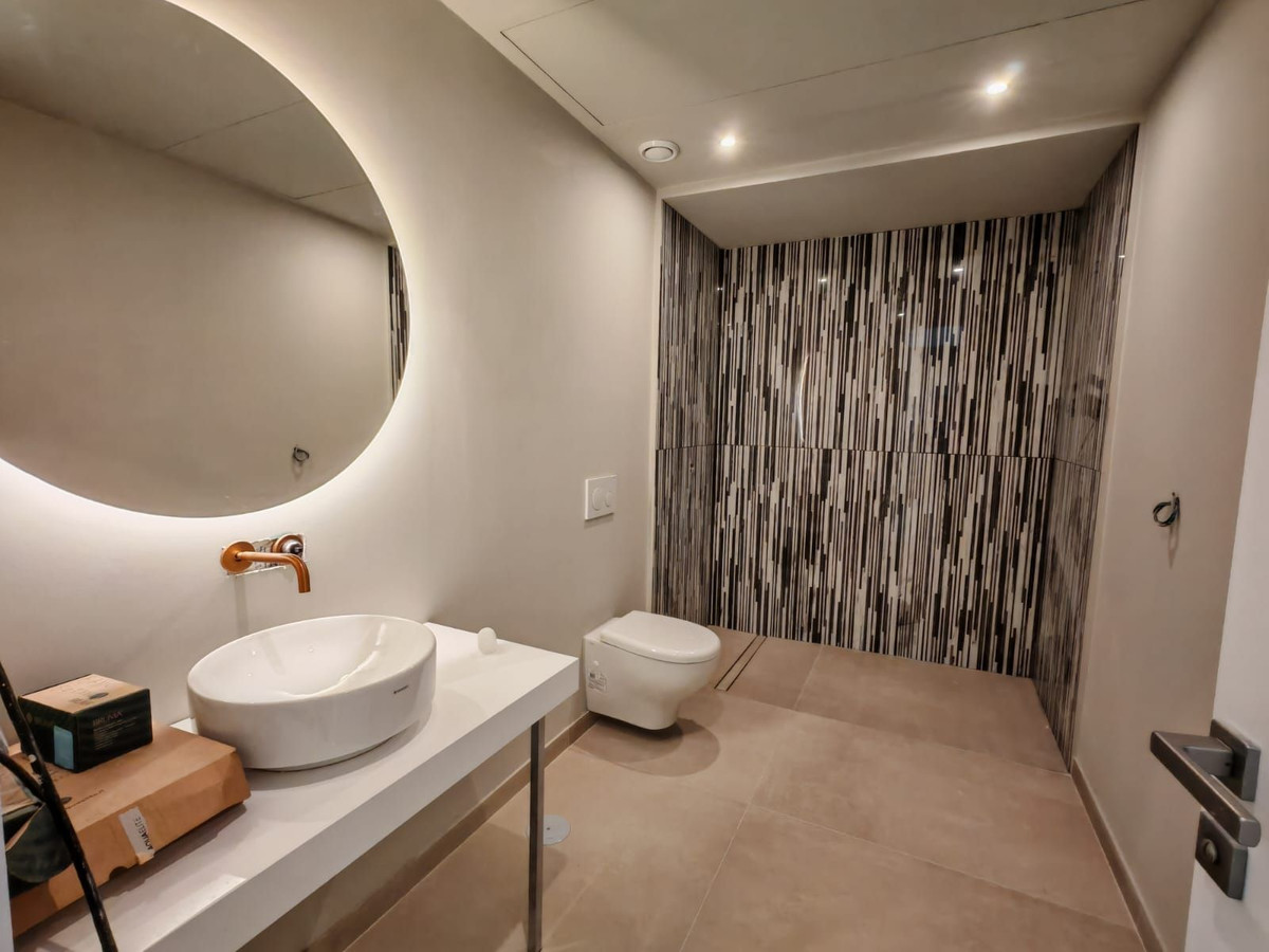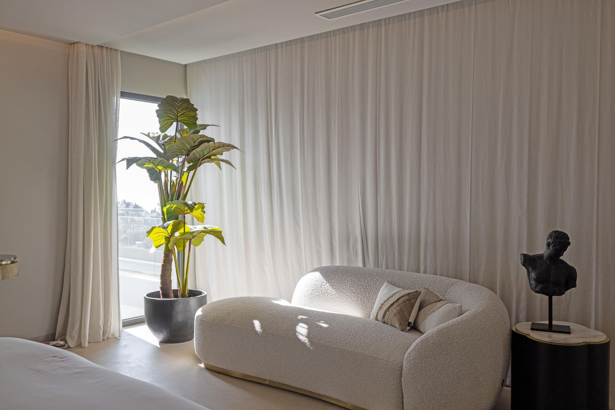 There is also a technical terrace housing solar panels that guarantee the property’s electrical sustainability, in line with the energy efficiency achieved through the joinery, glazing, and various ecological construction solutions — a detail that perfectly combines luxury with sustainability.