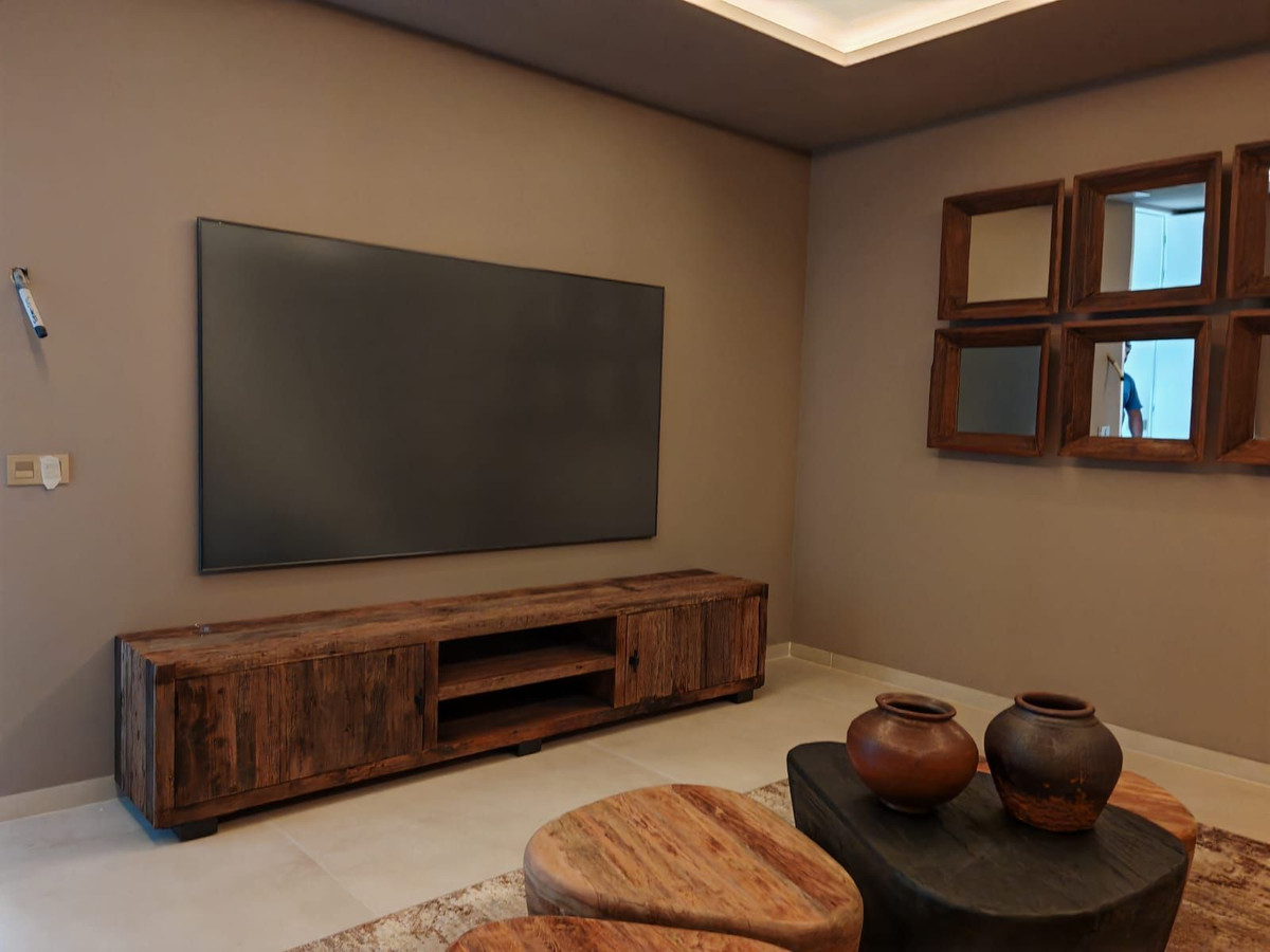 The house is distributed over four floors, each with unique features that add functionality and exclusivity. In the basement, there is a private cinema room, two bedrooms with en-suite bathrooms, a laundry room, and a machine room. The ground floor features a spacious living room, dining area, and a designer open-plan kitchen, as well as a bedroom with bathroom, a guest toilet, a cloakroom, and a second living room in the guest area.