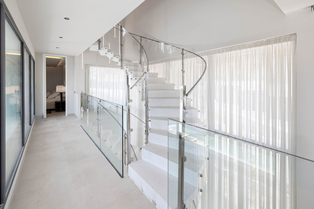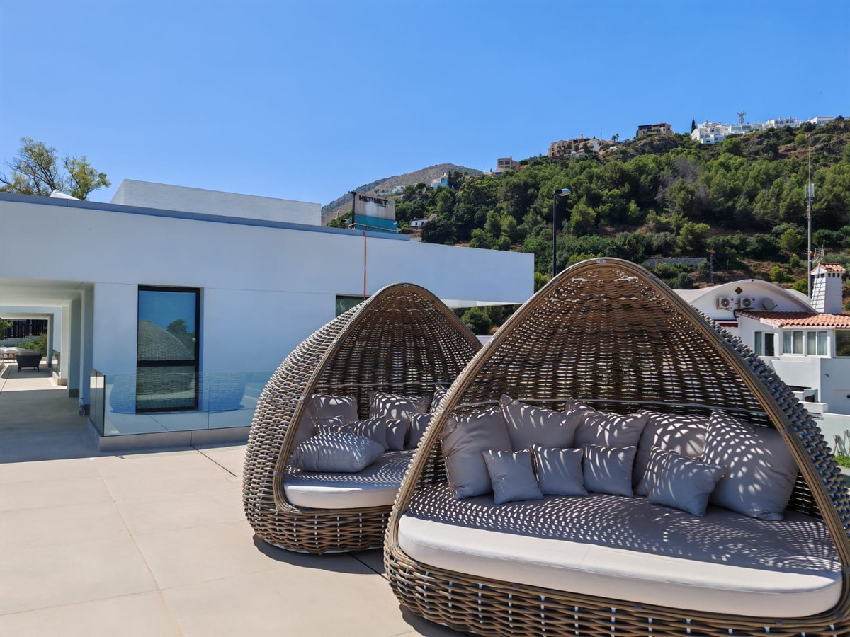 This spectacular detached villa, located in the exclusive area of Benalmádena Costa, is an architectural gem that combines luxury, comfort, and design in a privileged setting. With an impressive interior built area of 954.53 m², an exterior built area of 876.76 m², and landscaped grounds of 1,098.21 m², all set on a plot of 2,057.82 m², the property stands out for its spaciousness and elegance, designed to meet the needs of the most demanding buyers.