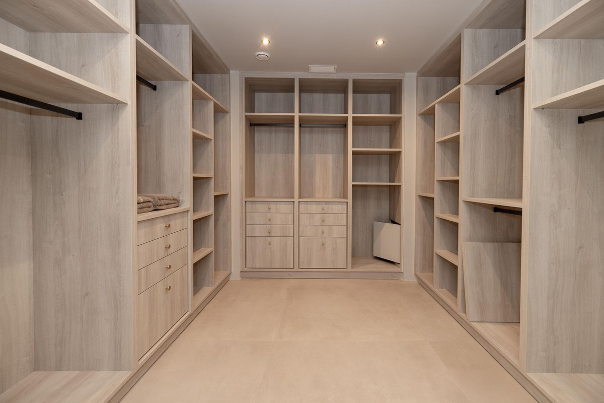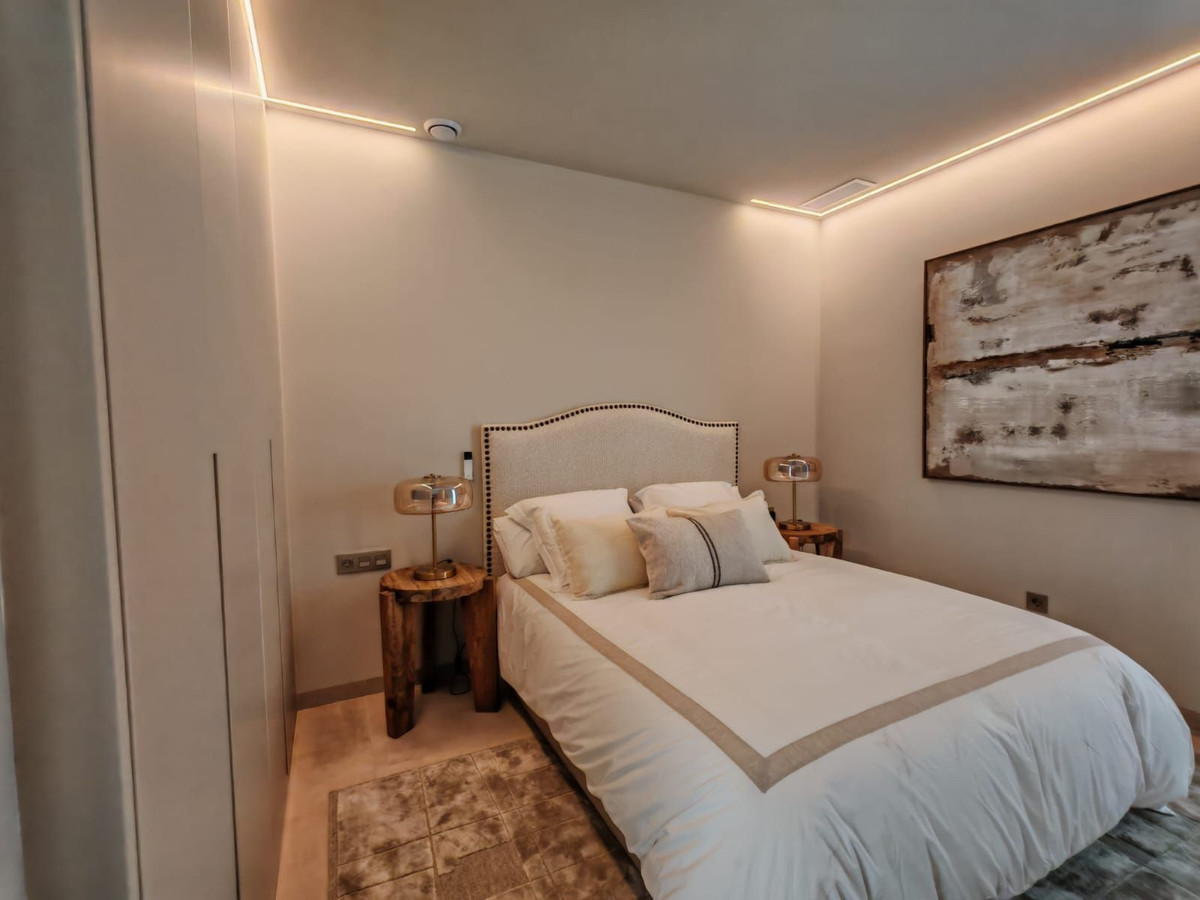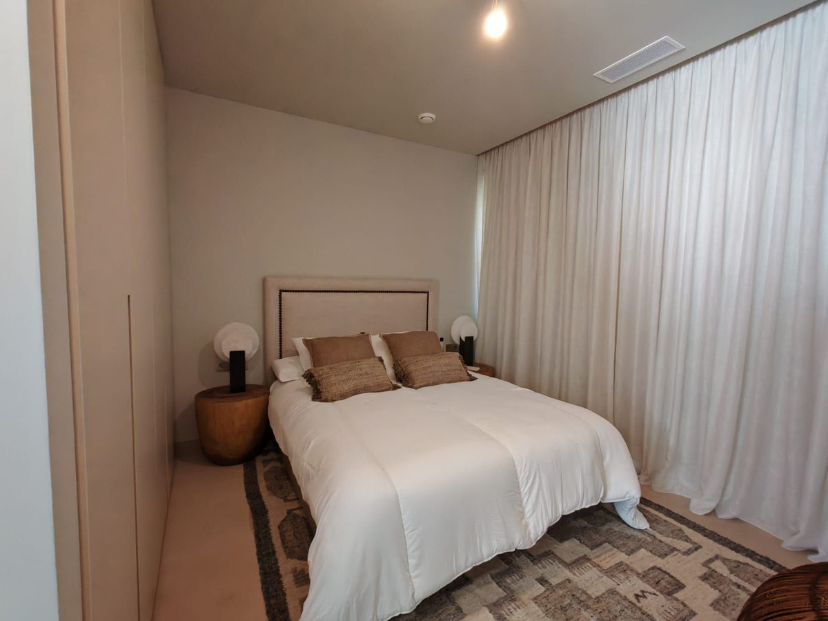 On the first floor, there are two bedrooms, a bathroom with shower and bathtub, and a suite with main bathroom and walk-in closet, all of them connected to the outdoor terrace. The attic floor with terrace offers a bedroom with bathroom, a cozy breakfast area, and breathtaking views over Málaga Bay and its sunrises.