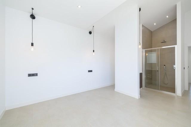 The villa features four spacious bedrooms, each with its en-suite bathroom, an open office area, a guest toilet, a large modern kitchen, and 53m² of terraces, perfect for enjoying the Mediterranean lifestyle. There’s also ample parking for a couple of cars, a utility room, and generous outdoor spaces.