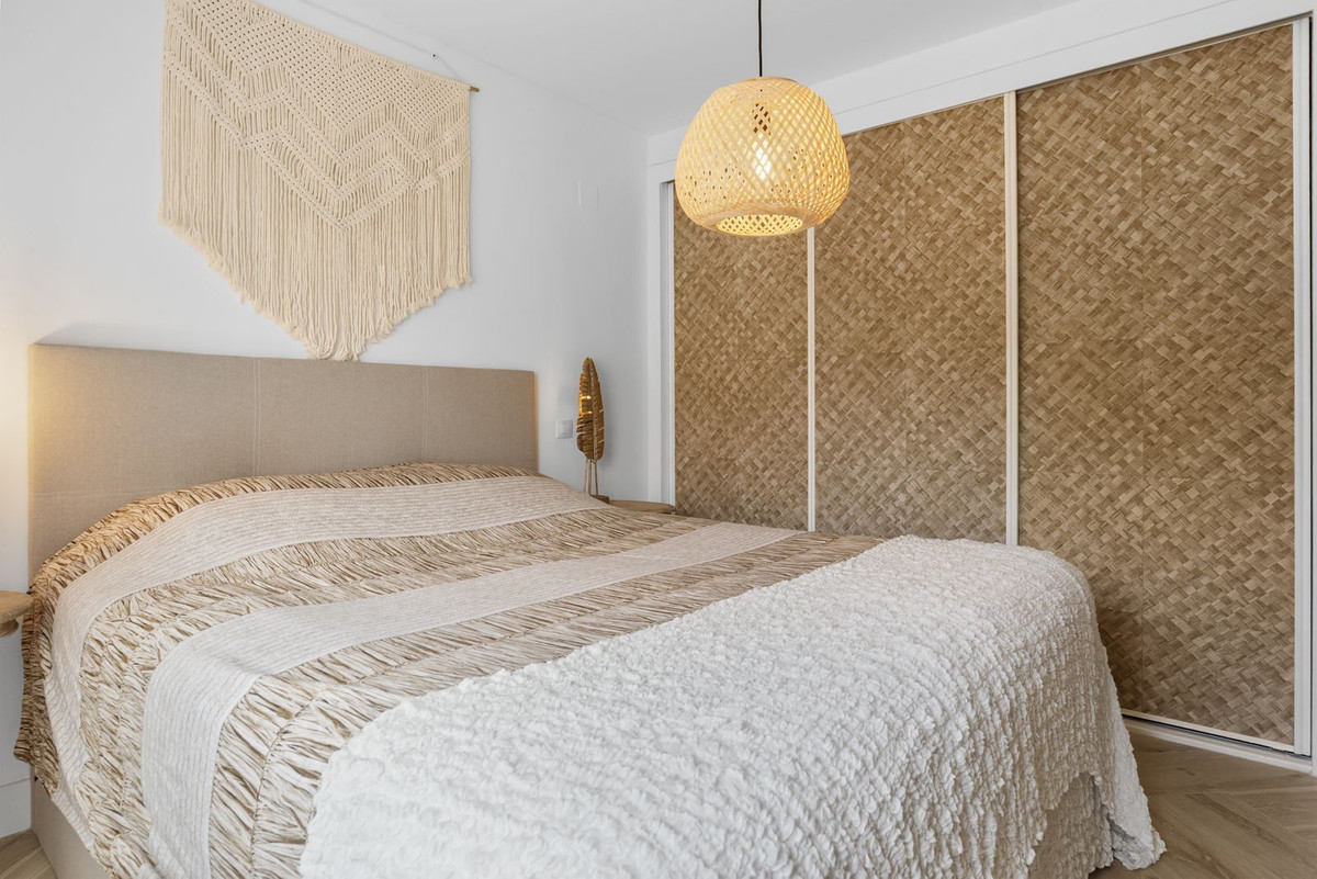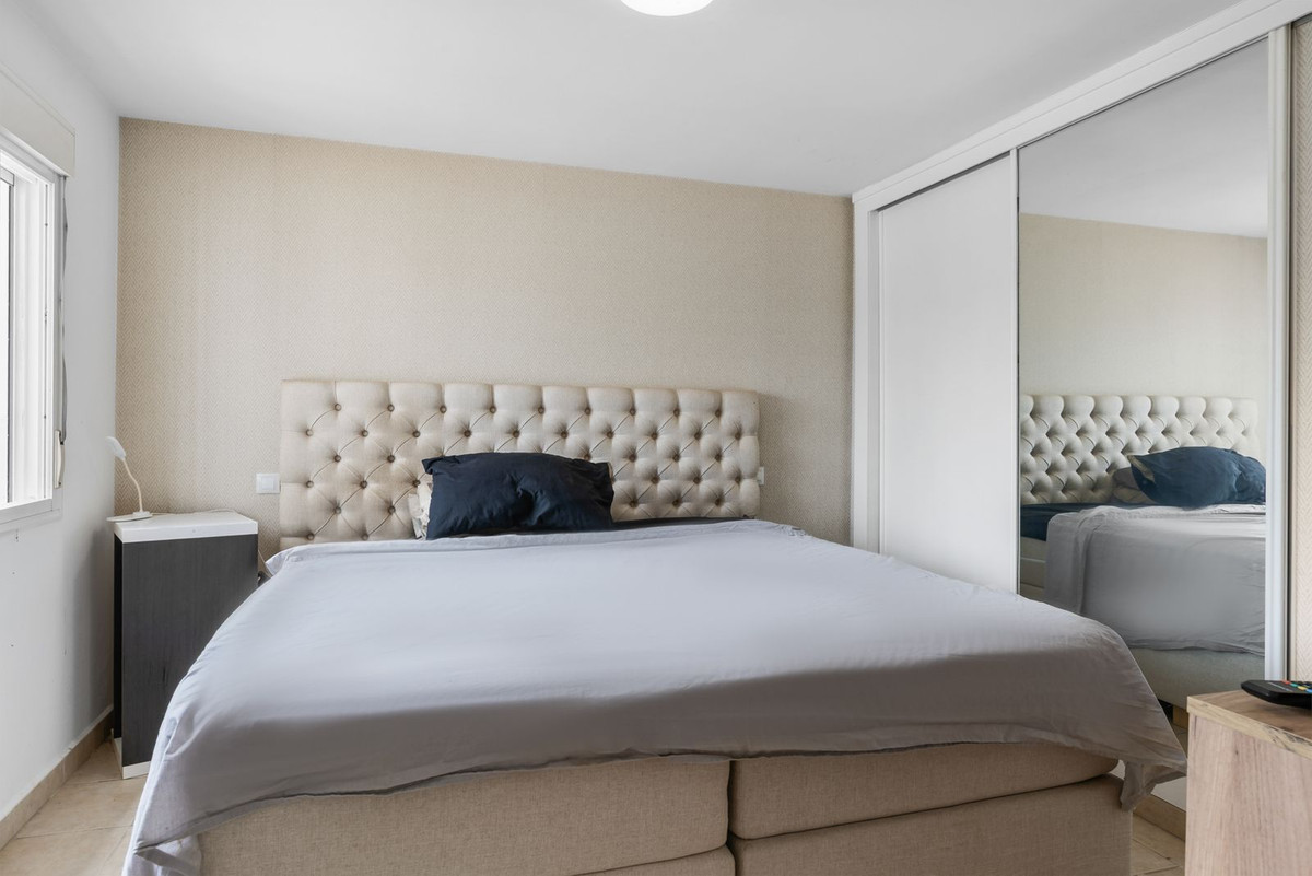 It has a very cozy, spacious living room with an open kitchen that is equipped with all the necessary appliances. From the living room, you can directly access the terrace. Both the kitchen, living room, and terrace offer stunning sea views.