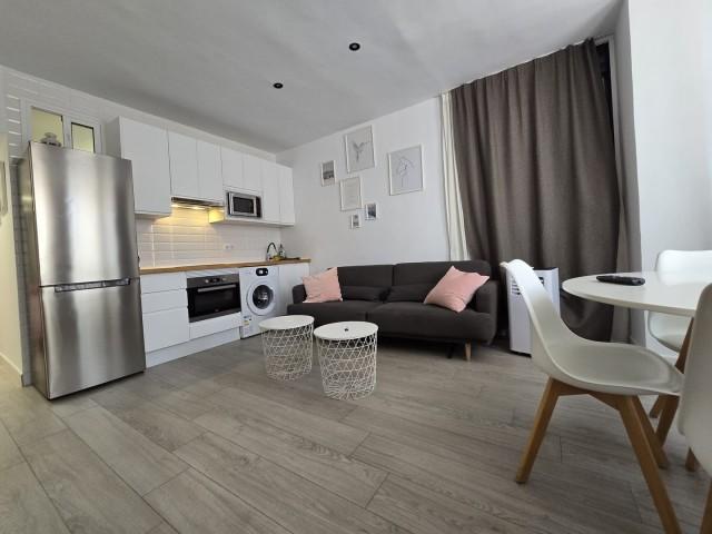 Located on the beachfront and Paseo Maritimo within the "Las Palmeras" Hotel, one of the most desirable areas on the coast, this renovated apartment is the perfect opportunity for those looking for an investment property, a place to live, or a vacation rental right on the beach with all the amenities nearby. Facing west, the home features a fully equipped kitchen and a functional layout, ideal for a comfortable and stress-free stay. The location is unbeatable, just steps from the beach, the center, restaurants, cafes, shops, and entertainment areas. The community fees include electricity, water, and garbage collection. Although the property does not have a terrace, pool, garden, parking, or storage room, its privileged location on the seafront and Paseo Maritimo, and its proximity to all amenities, make it an exceptional option for vacation use or as a high-yield investment.