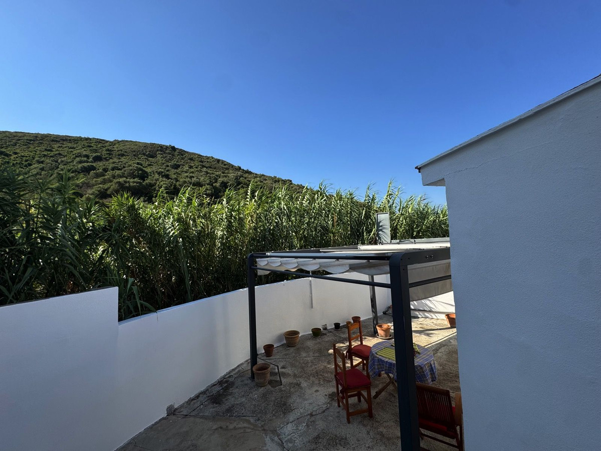 Nestled in the tranquil hamlet of Secadero within Manilva's verdant embrace on the western Costa del Sol, this delightful single-storey cottage offers the perfect blend of rustic charm and modern convenience. Spanning 109 m² of built space, it features a generous 100 m² southeast-facing outdoor patio and integrated garage, creating an idyllic haven where only nature unfolds before and behind – flanked gently by neighbours on either side for a sense of secure community without intrusion. Bathed in all-day sunshine, the patio, garage, fully equipped kitchen, spacious living-dining area, and bathroom all orient southeast, while the remainder enjoys cooling northwest breezes, ensuring year-round comfort amid Andalusia's 300+ sunny days.