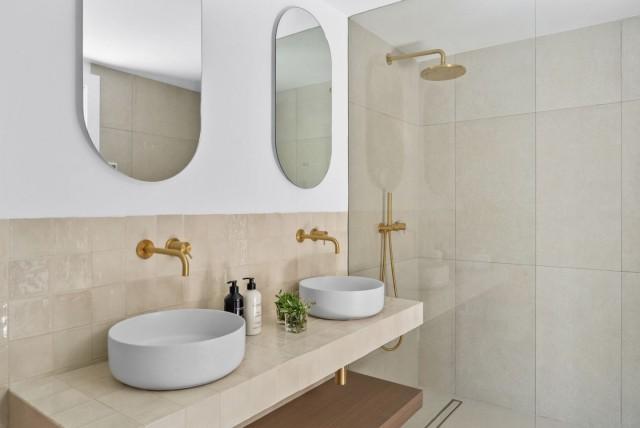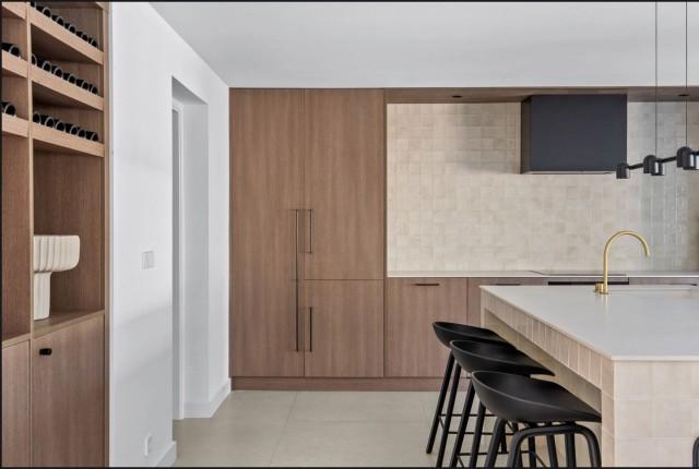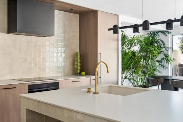 This property is perfect for year-round living or a holiday home. The combination of earthy colors, matte black, smoked oak wood, gold touches, and unique zellige tiles creates a refined look for the property. Upon entering, you’re greeted by a distinctive staircase made of wood and metal, seamlessly merging traditional and modern styles. Right from the entrance, the home opens up to the kitchen, dining, and living areas, all overlooking a beautiful outdoor living space with a private pool, creating a close connection between the inside and outside areas, which gives a peaceful and unified feeling.