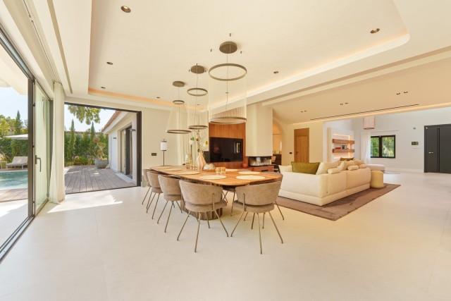 This exceptional one-level villa, located just minutes from the vibrant Puerto Banús, delivers refined contemporary living with effortless indoor-outdoor flow. Set on a generous plot with complete privacy, the home offers five spacious bedrooms, expansive open-plan interiors, and a striking double-height entrance hall with a geometric roofline that adds architectural flair. Clean lines, high-end finishes, and expansive windows create a light-filled environment perfect for modern Mediterranean living.