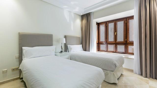 In terms of local attractions, the penthouse is ideally positioned. The calm waters of Playa Ventura del Mar are just steps away, ideal for swimming, paddleboarding, or simply relaxing. The San Pedro Alcántara promenade lies nearby, as does the Guadalmina Golf Club, renowned for its 18-hole course. Dining options are abundant, with standout venues such as D-Wine, La Sala, and Naga Thai all within easy reach. Luxury retail and nightlife await at Puerto Banús, just a few minutes’ walk from the residence, offering access to designer boutiques like Louis Vuitton and Dior, as well as vibrant marina-side experiences.