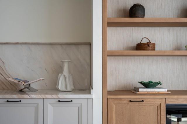 The entrance level welcomes you with natural light and an open layout uniting the living room, dining area, and social kitchen. Large sliding doors open to a private garden designed for outdoor living, featuring a heated pool, summer kitchen, and lounge and dining areas – your own secluded retreat by the sea. A guest suite with an en suite bathroom and a guest toilet completes this level.