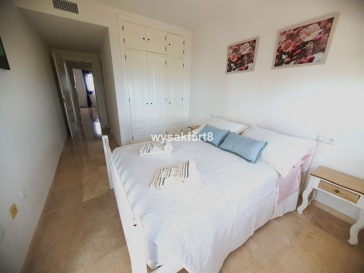 This middle-floor property includes a spacious and bright living room from which you access the 12 m² covered terrace with fantastic Southeast views of the Mediterranean Sea, golf course, and Duquesa port. Two bedrooms, 2 bathrooms. Both bedrooms offer plenty of space and a wardrobe. The master bedroom has an en-suite bathroom and access to the main terrace. There is an additional bathroom next to the second bedroom. Large equipped kitchen. Preinstallation of hot & cold air-conditioning, exterior parking.