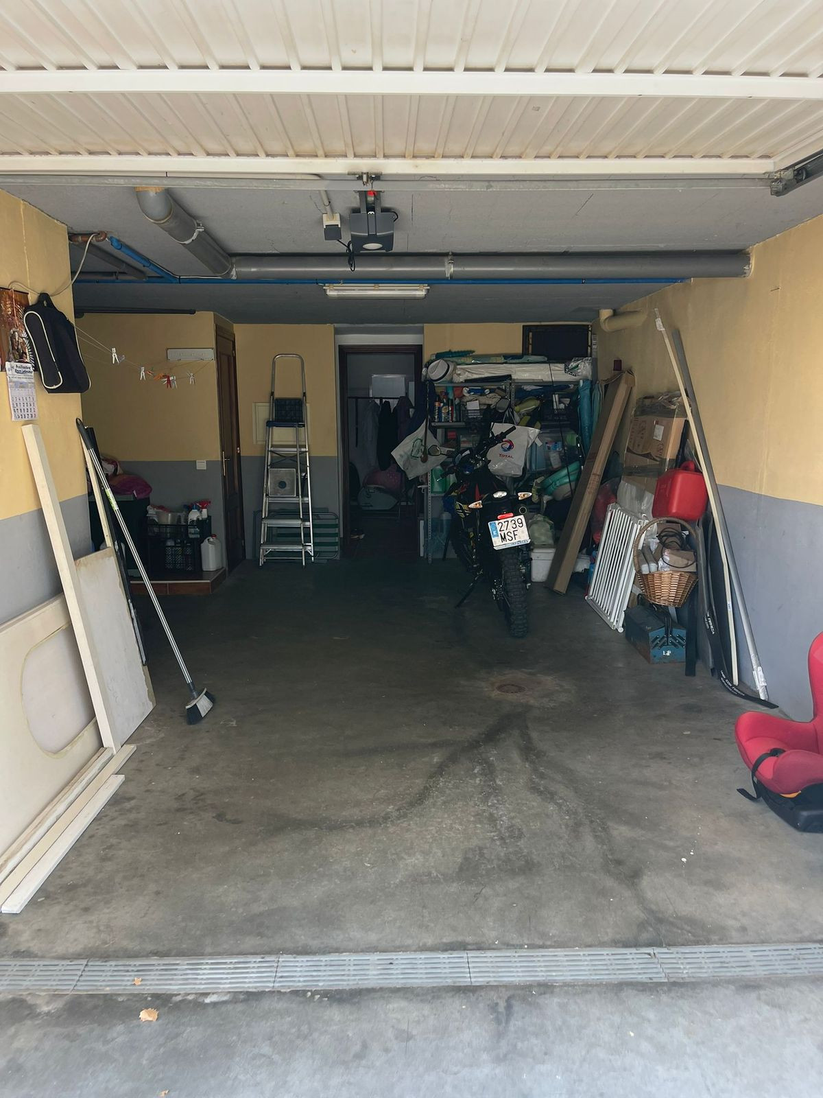 You can access the property either through the large private garage on the ground floor or by steps leading up to the main entrance. Upon entering, you’re welcomed into a spacious front room with a cozy chimney and direct access to a small terrace with a built-in BBQ—ideal for relaxing or entertaining. Just off the living space is a bright, modern kitchen that overlooks a peaceful green park.