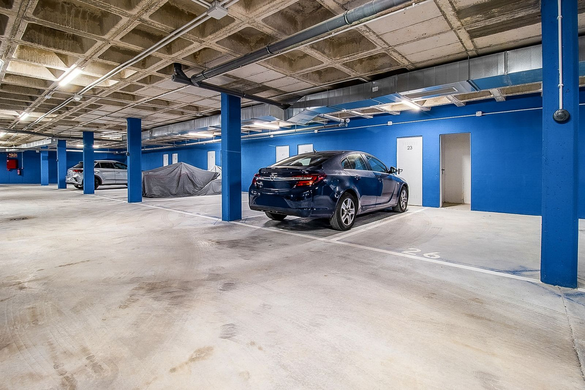 The property includes two private garage parking spaces and a storage room.